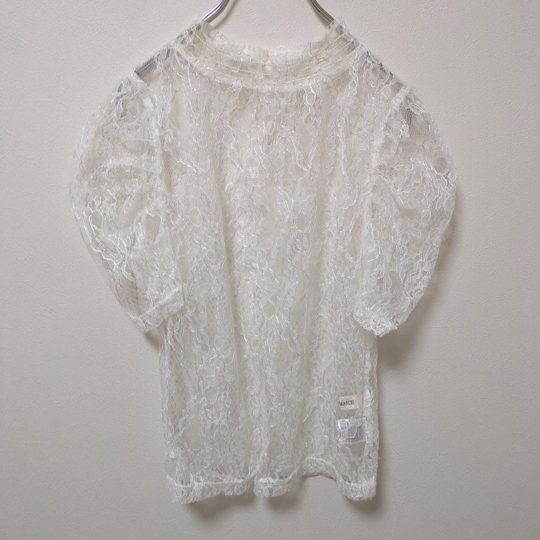 - 【美品】ミッシュマッシュ(38)繊細レースブラウス*スタンドカラー*半袖*上品