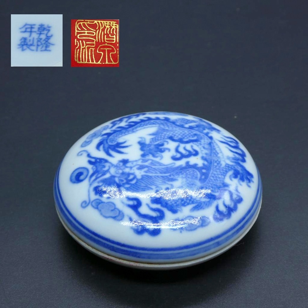 - 中国 印泥 朱肉 乾隆年製 銘 龍 ドラゴン 陶器 検(アンティーク 中国古玩 美術品