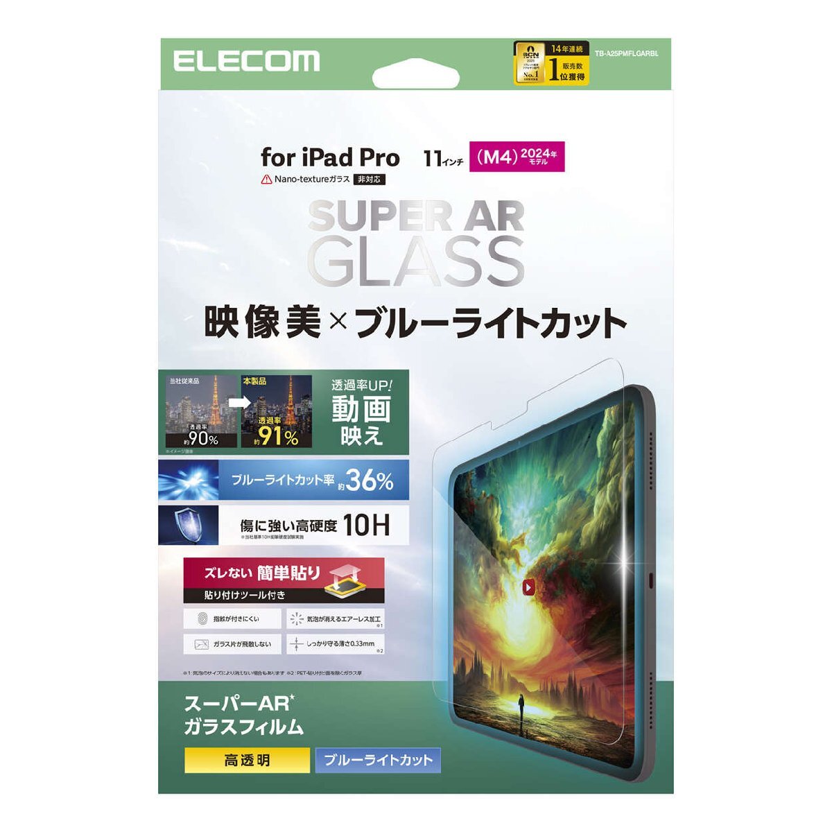 - 11インチiPad Pro(M4)用液晶保護ガラスフィルム 動画映え/BLカット フィルムがキレイに貼れる専用ガイドフレーム付: TB-A25PMFLGARBL