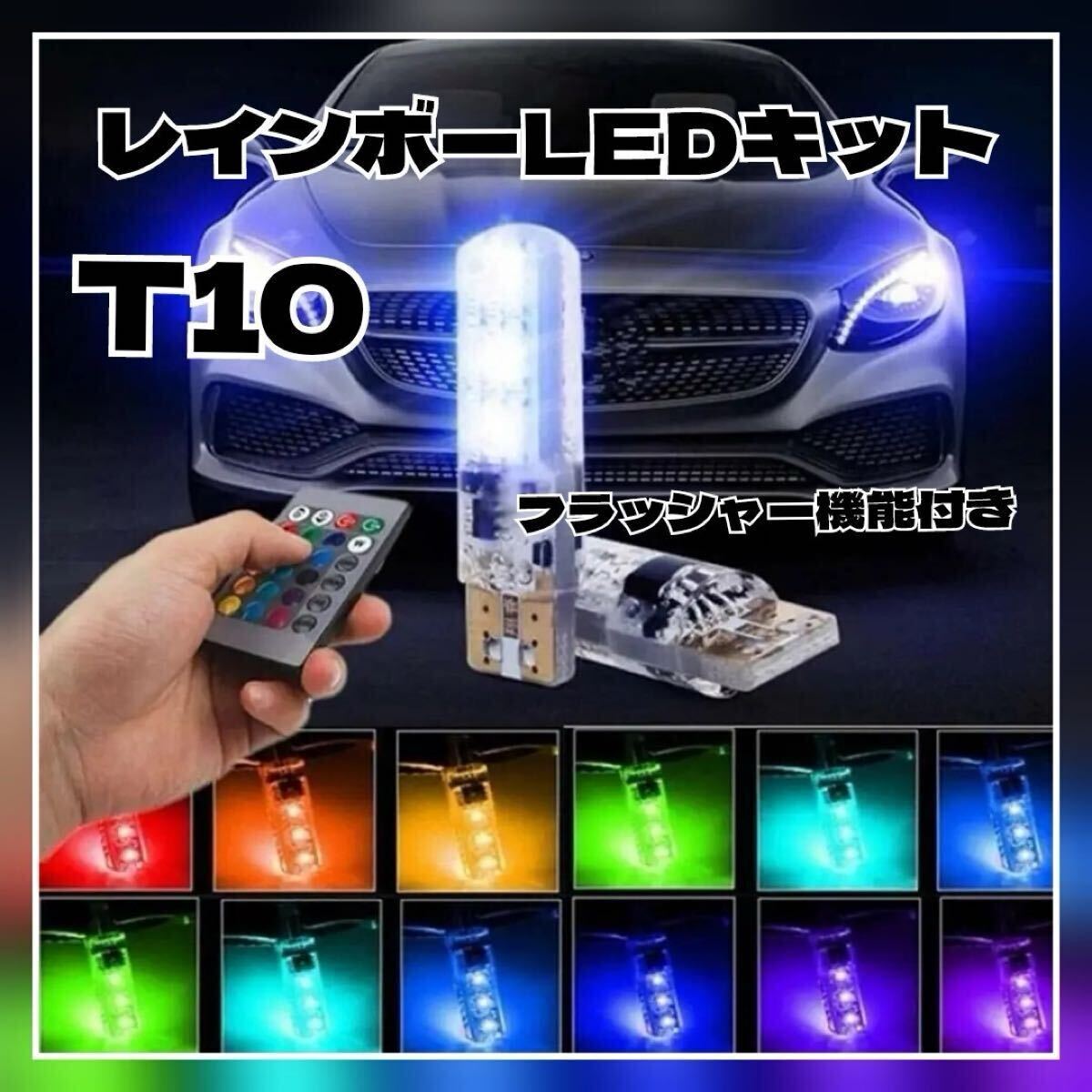 - リモコン付き T10 RGB LEDバルブ ストロボ フラッシャー レインボー ※CR1220使用