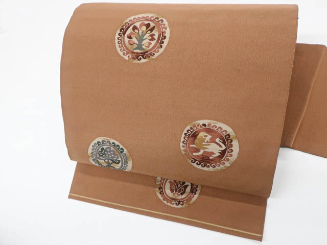 > 《京都一輝堂》リサイクル着物 九寸名古屋帯 お太鼓柄 金糸 25b09-1777