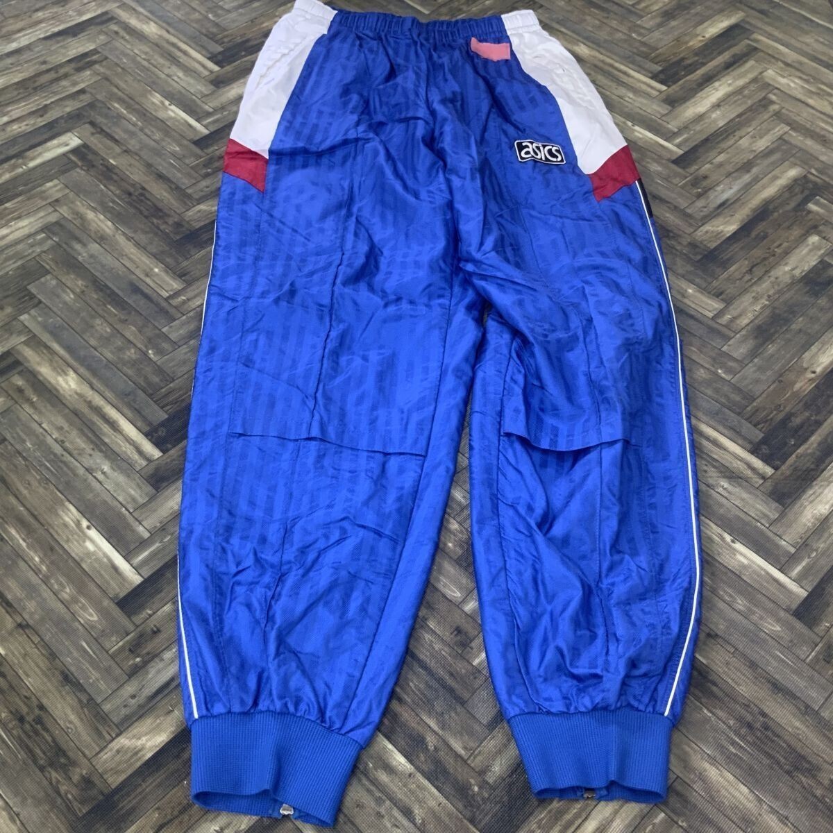 - HY196 実物 asics アシックス ウィンドブレーカー スポーツウェア ウインドパンツ ブルー ホワイト メンズXO