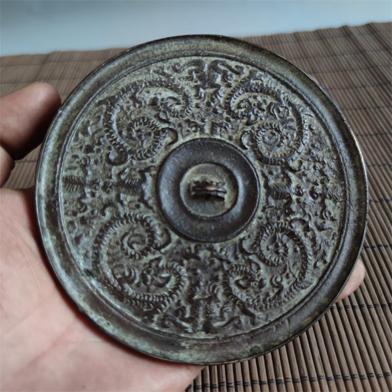 - 純銅鏡 青銅鏡 龍銅鏡 竜 神獣 中国 銅器 青銅彫 銅製 銅鏡 置物 擺件 収蔵 鑑賞 中国美術品
