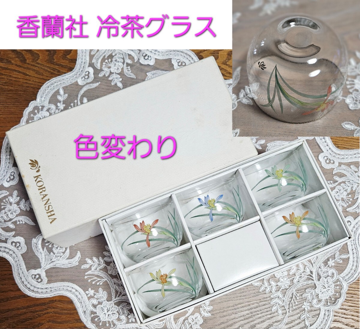 - 香蘭社 色変わり 冷茶 グラス 5客セット 新品