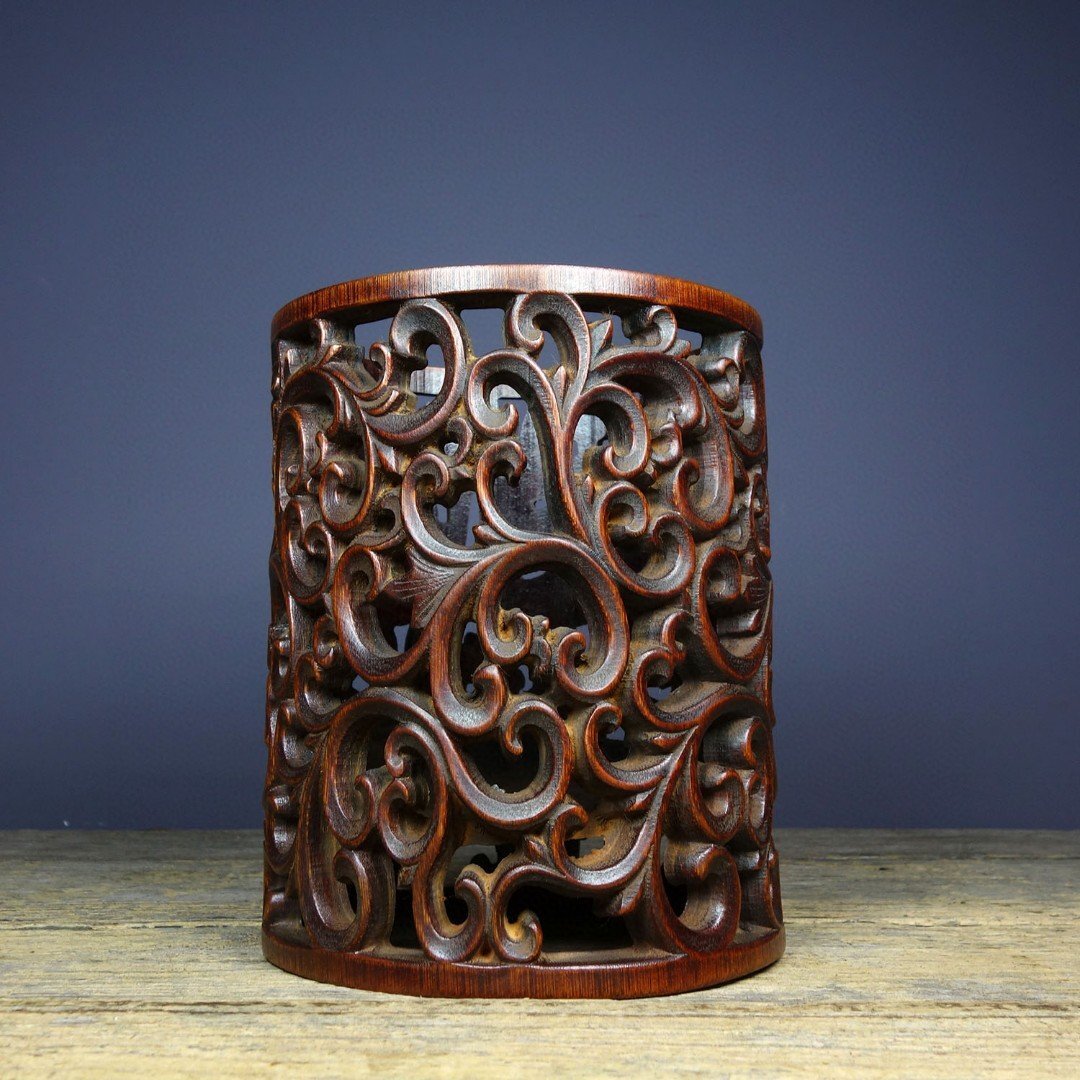 - 送料無料!ペン立て 筆筒 筆立 筆桶 書道具 竹彫刻 花草 透かし彫り 彫刻 書道具 中国美術 收藏sux260