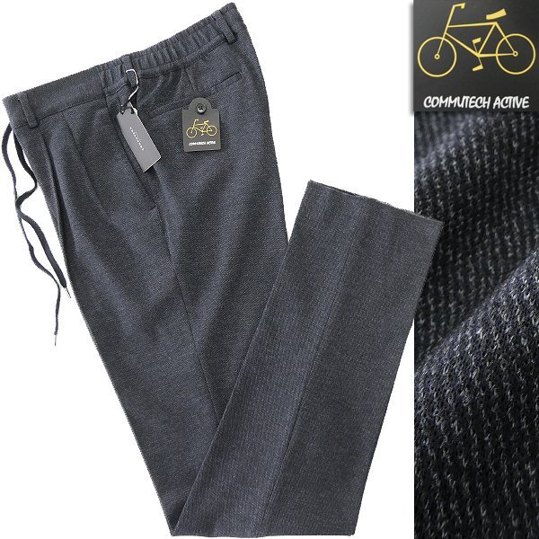> 新品 スーツカンパニー カルゼ柄 ストレッチ タック テーパード パンツ M 紺 【P31037】 COMMUTECH メンズ スラックス ジャージー ポンチ