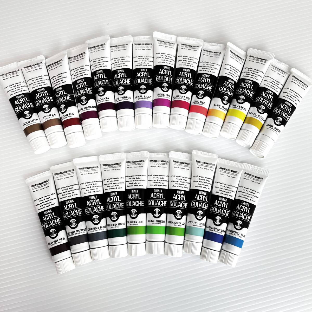 - 新品24色◆ターナー【アクリルガッシュ 20ml】水溶性 アクリル絵具◆ゴールドディープ・蛍光ホワイト・蛍光 パール系多数