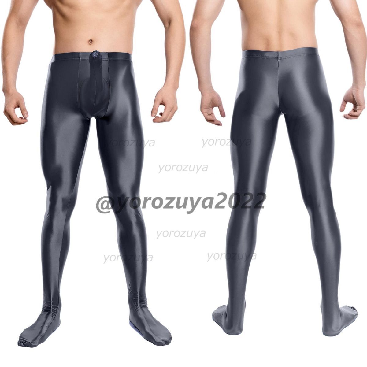> 181-293-27 竿付き 光沢 艶々 10分丈 Toeタイプ レギンス【グレー,XLサイズ】男性 メンズ 勃起パンツ ランジェリー ブリーフ ショーツ.1