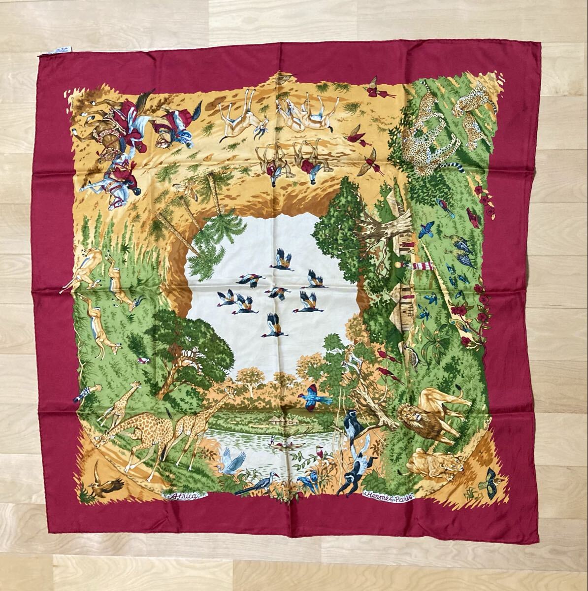 - [HERMES] カレ90 AFRICA アフリカ シルクスカーフ レッド フランス製 エルメス