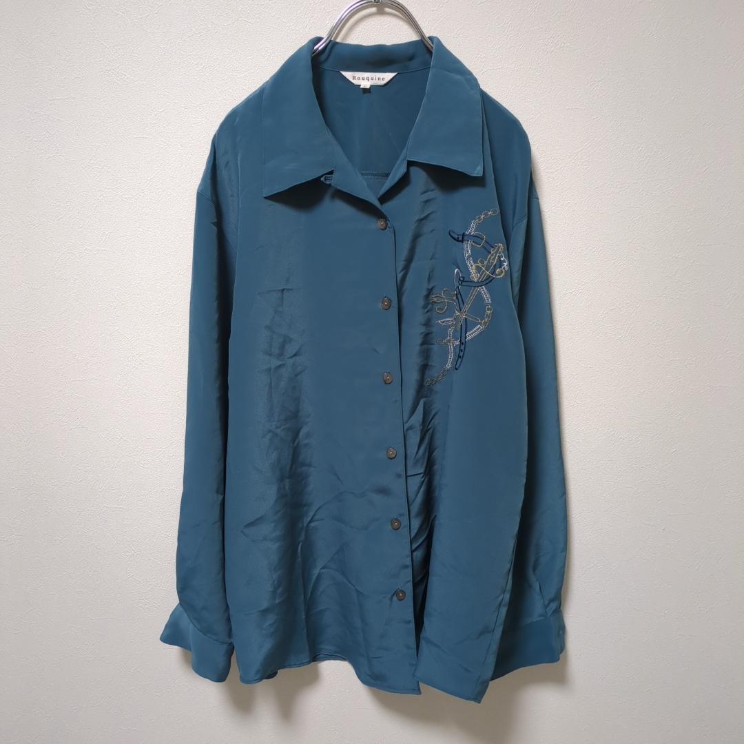 - Rouquine(L)長袖シャツ*フロント刺繍*光沢感*オープンカラー*上品