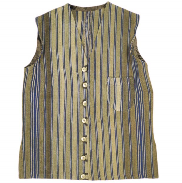 > THIBAULT VAN DER STRAETE ティボーヴァンダルストラット フランス製 アルパカラグベスト Free BROWN BEIGE/BLUE ジレ ストライプ トップス
