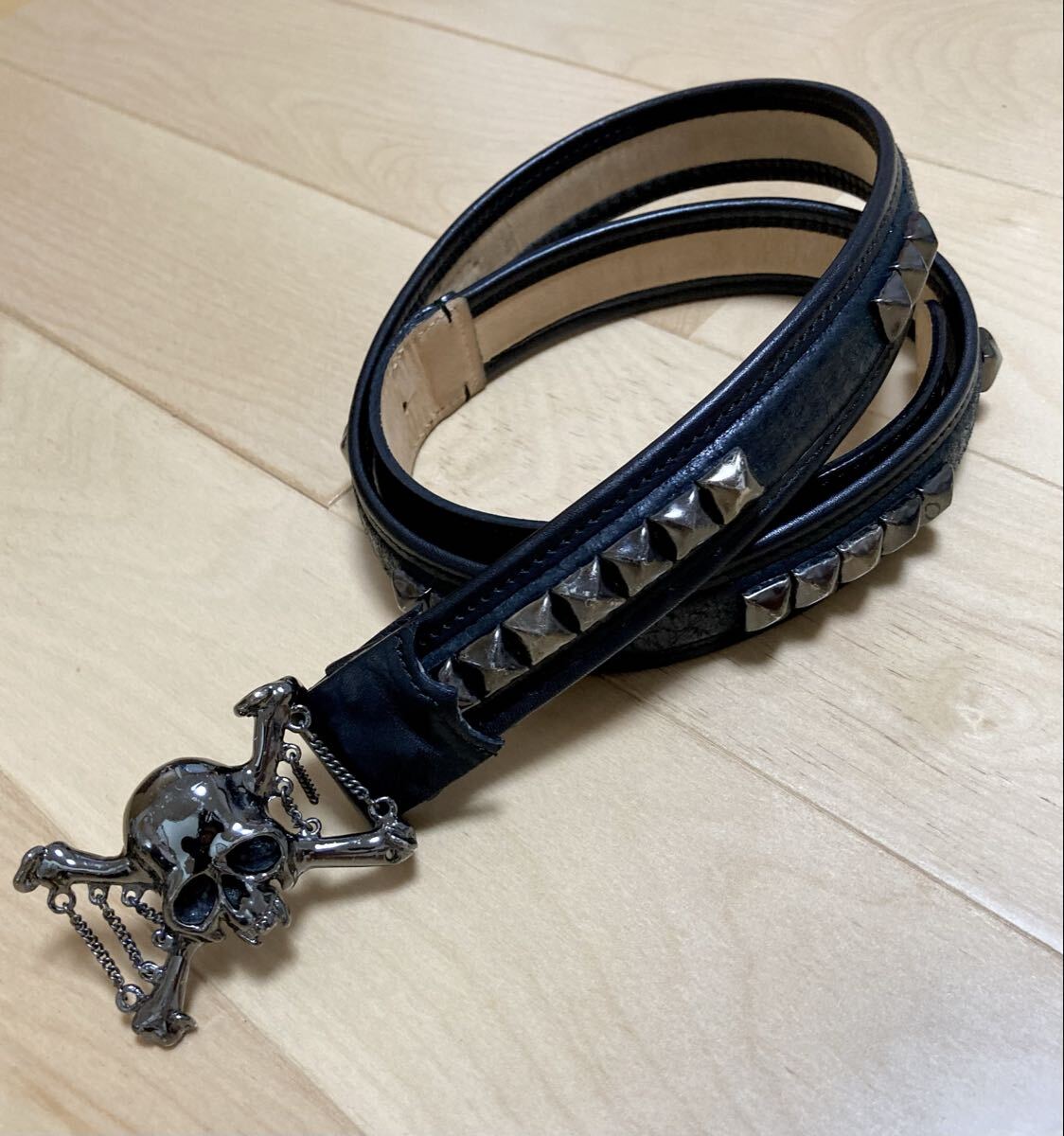 - [ROEN HIROMU TAKAHARA] チェーンスカルバックル スタッズ レザーベルト ブラック 日本製 ロエン ヒロムタカハラ