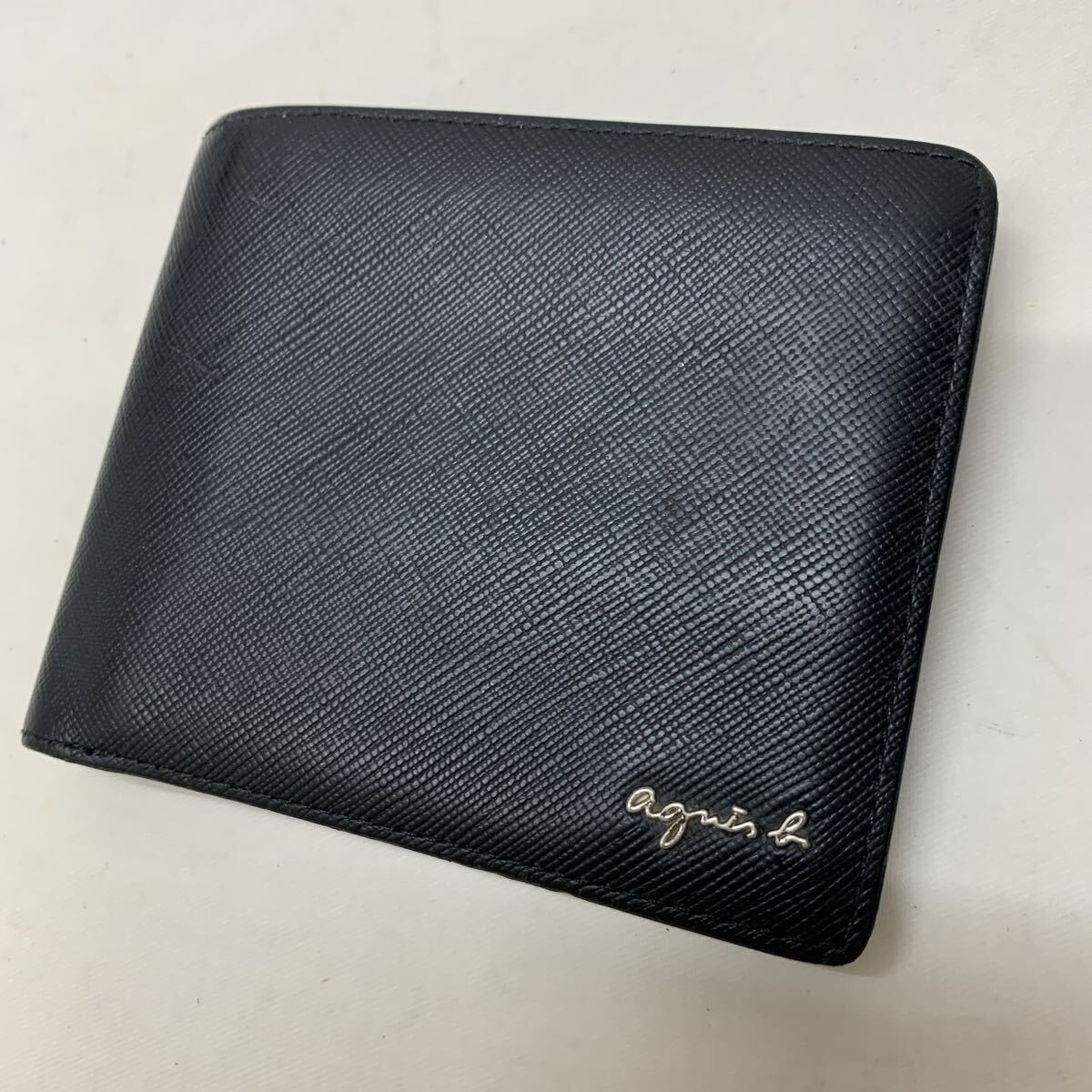 - agnes.b アニエスベー 二つ折り財布 コンパクトウォレット 黒 ブラック レザー 小銭入れ