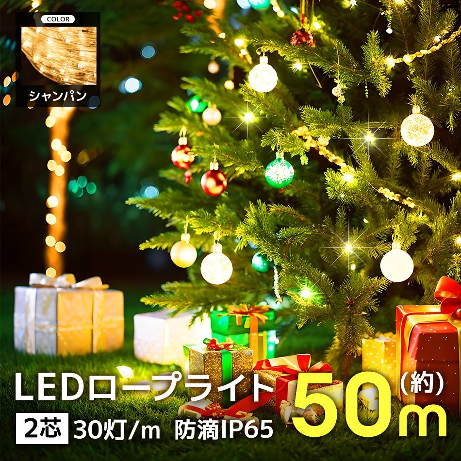 - イルミネーション LED ライト 屋外 クリスマス 計1500球 50m カット可能 防水 チューブライト イルミネーションライト 電飾 シャンパン