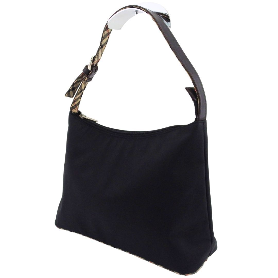 > バーバリーブルーレーベル BURBERRY BLUE LABEL ショルダーバッグ チェックパイピング ブラック ブラウン系 レディース 中古