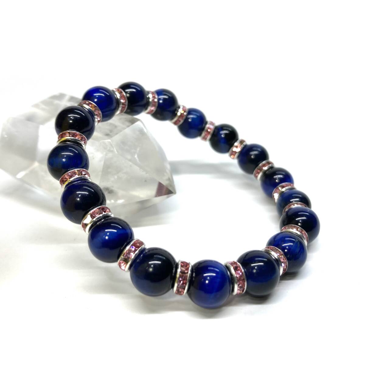 - ブルータイガーアイ パワーストーン ブレスレット 8mm (ピンク) /開運 浄化 金運 仕事運 効果 レディース 通販 青色