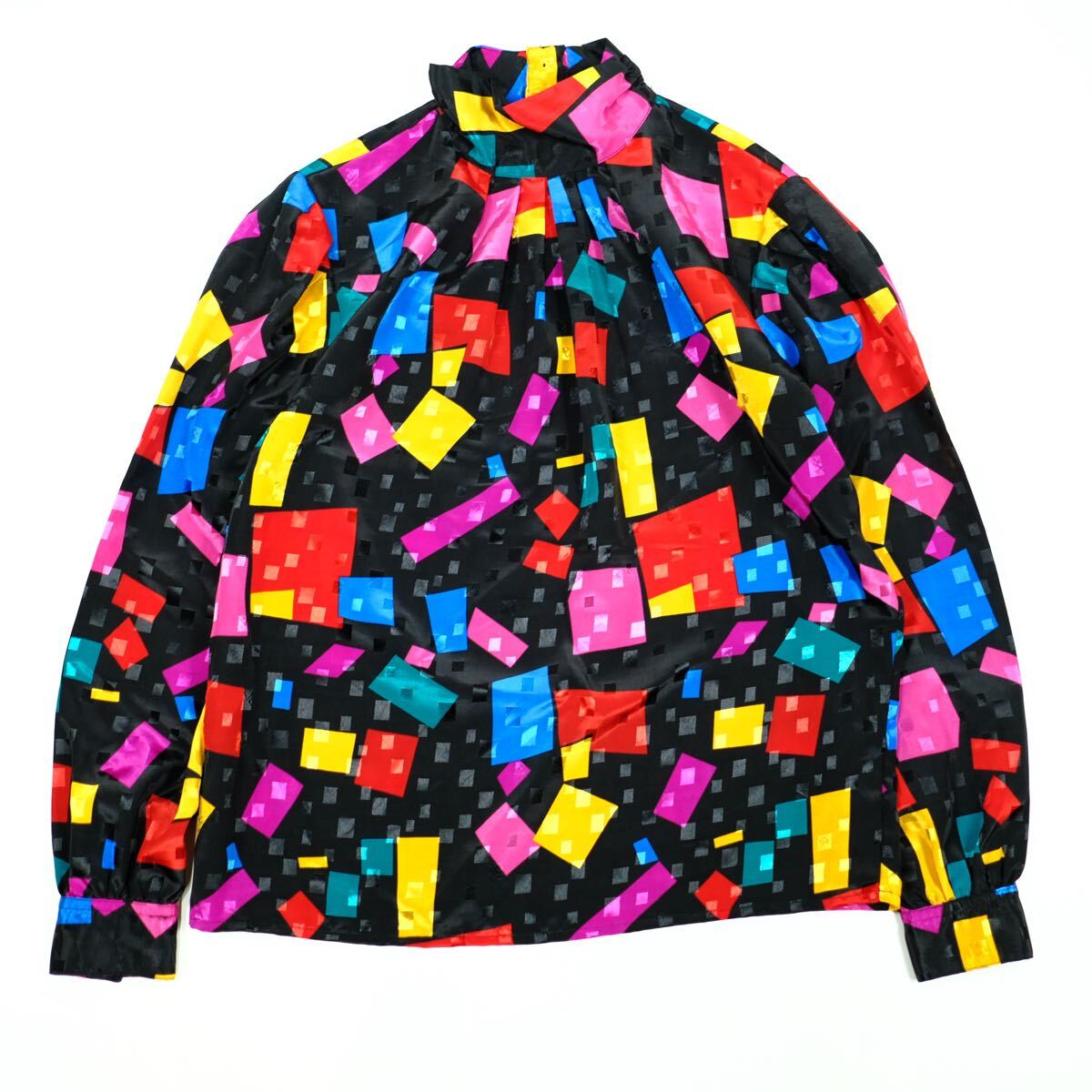 - 1980s ビンテージ バックボタンシャツ プルオーバー カラフル デザイン 総柄 アート ハイネック 古着屋 ユーロ