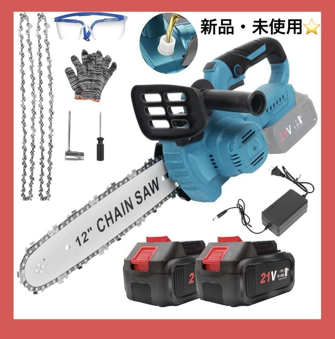 - 新品21V充電式チェーンソー 12インチ 電動のこぎり バッテリー替刃2個付