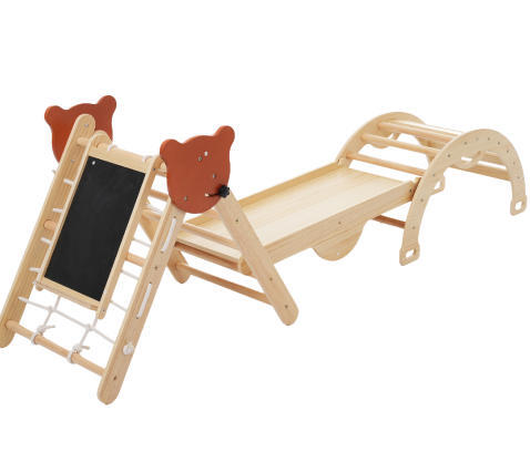 - ジャングルジム 6in1 天然木 すべり台 滑り台 折りたたみ 黒板付き 耐荷重50kg コンパクト 多機能 木製 屋内 室内用 大型遊具 室内遊具