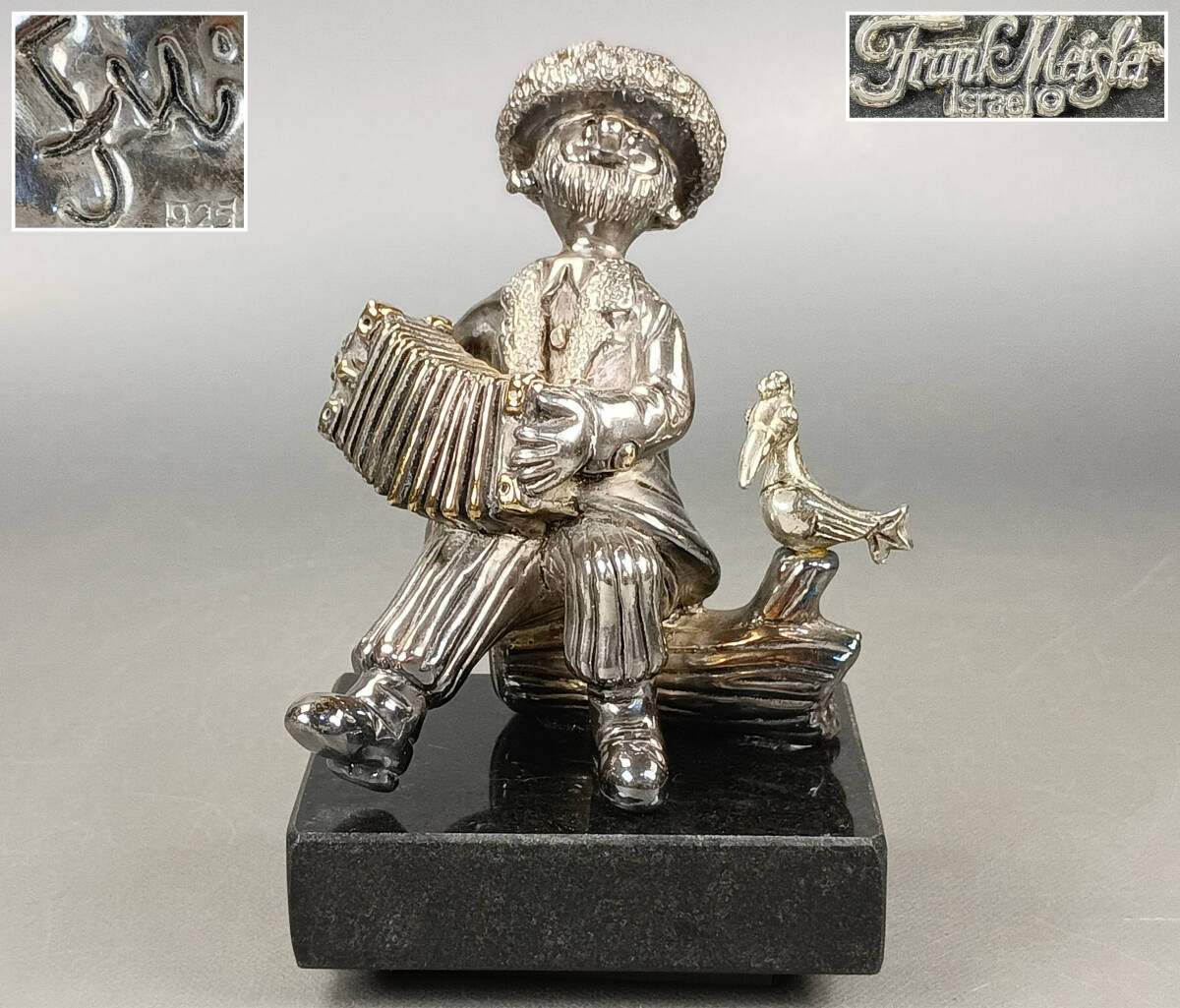 > 【偲】シルバー925製 イスラエル彫刻家 Frank Meisler フランク マイスラー 置物 重約448g 高さ約12.5㌢ フィギュリン 銀細工 r-919