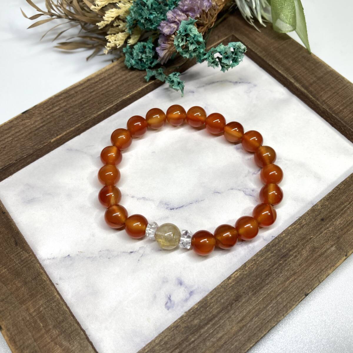 - カーネリアン&ルチルクォーツ ブレスレット パワーストーン レディース 女性 金運 仕事運 開運 天然石ブレス