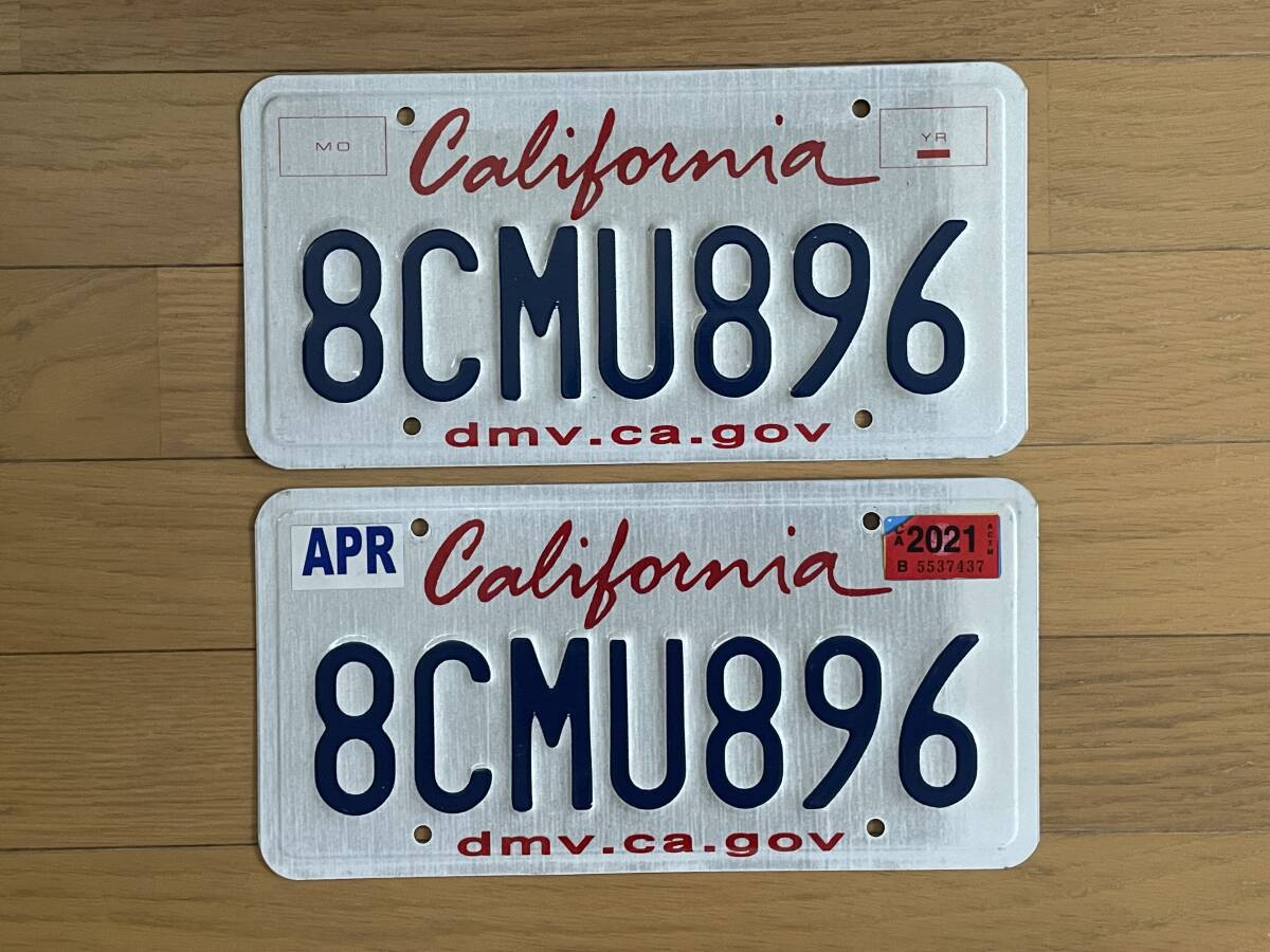 - カリフォルニア ライセンスプレート 8CMU896 2枚セット USDM 世田谷ベース 米国トヨタ シボレー フォード ロサンゼルス ナンバープレート
