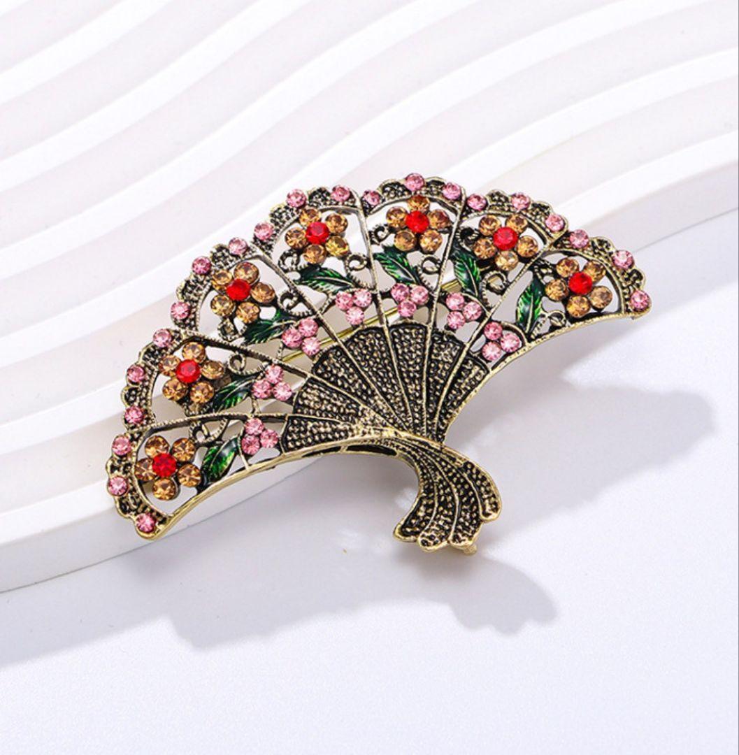 - ブローチ フラメンコ 扇子 レトロ シージョ留め ラインストーン 扇 アバニコ形