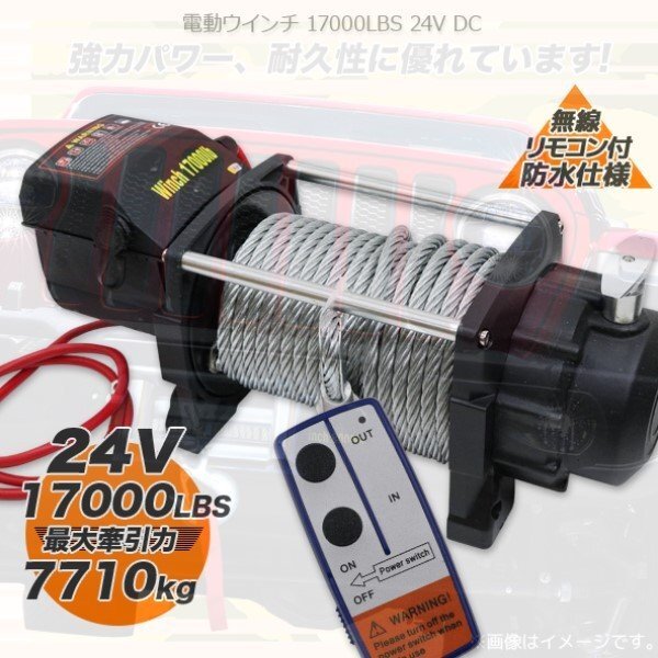 > 送料無料 17000LBS(7650kg) 牽引力で様々用途で使用が可能高級新型 無線/有線 リモコン付き 電動ウインチ/ DC24V 防水仕様