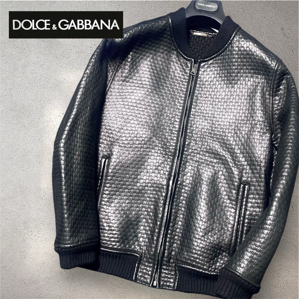 - 超美品◆80万【まるで革の鎧】ドルガバ◎イタリア製◆DOLCE&GABBANA【一点物】黒革タグ◎内側ウールニット L相当 レザージャケット/メンズ