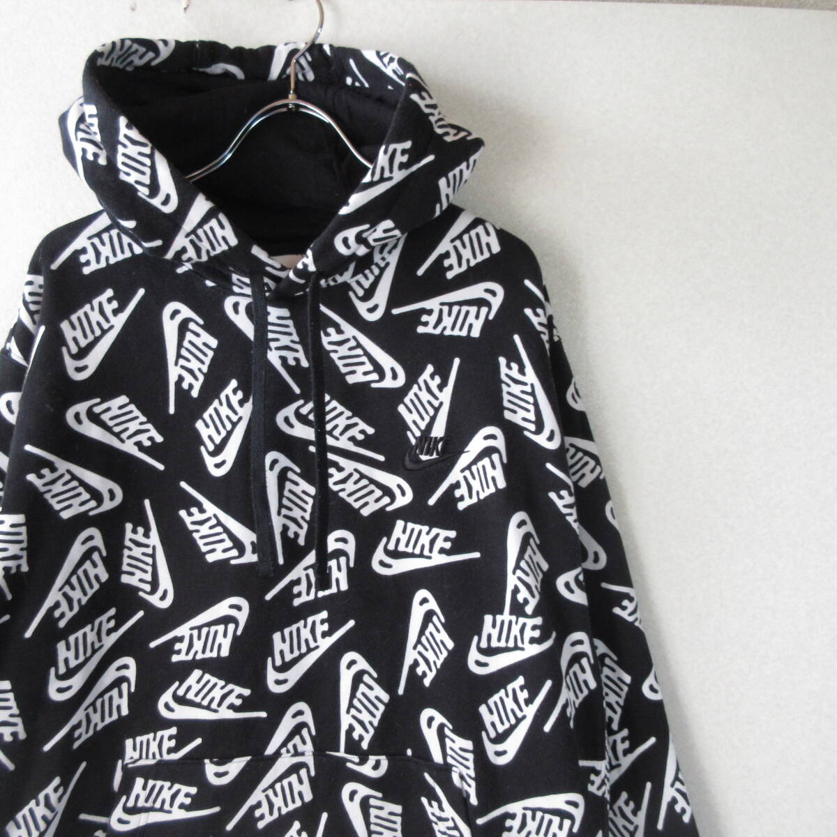 - ○良品 NIKE ナイキ◆スウェット パーカー 総柄ロゴ プルオーバー DD4848-010◆メンズ ブラック/ホワイト XLサイズ
