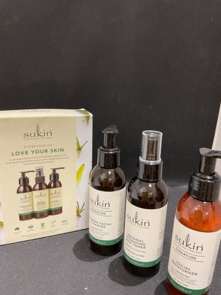 - 【P-2879】sukin スキン リリーフセット 3STEP Face kit モイスチャー ミスト クレンザー コスメ オーガニックコスメ ほぼ満量
