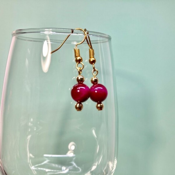 - ピンクタイガーアイ ピアス 一粒フックピアス 8mm (ゴールド) イヤリング、樹脂フック変更可 樹脂ピアス シンプル パワーストーン