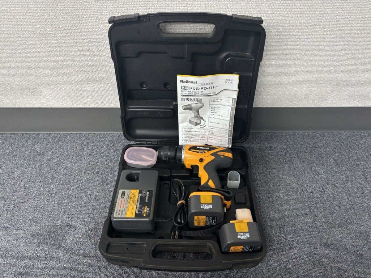 > I40022072519 National ナショナル EZT113YKY 充電ドリルドライバー ケース付き 電池パック 充電器 通電未確認 電動工具 現状品 中古