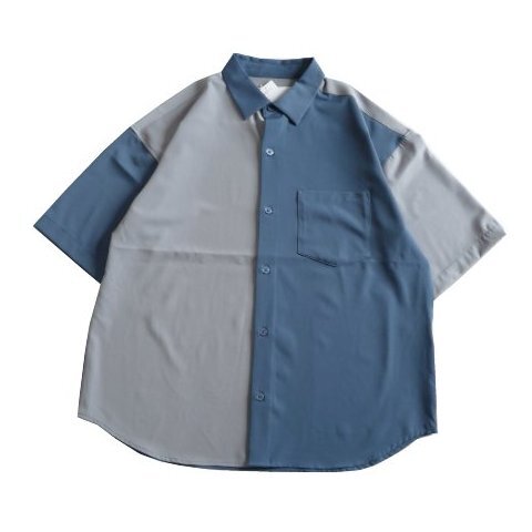 - 新品 バイカラー シャツ 半袖 CHIP CLIP メンズ M 青 ブルー 紳士 無地 切り替え