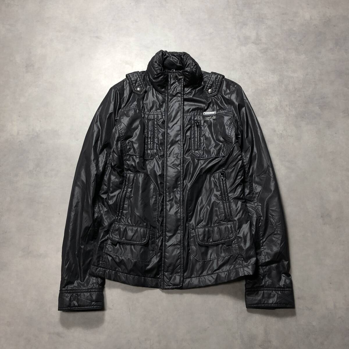 > WQ756●REPLAY:フード付き中綿ナイロンミリタリージャケット ●M●黒 裏地チェック リプレイ