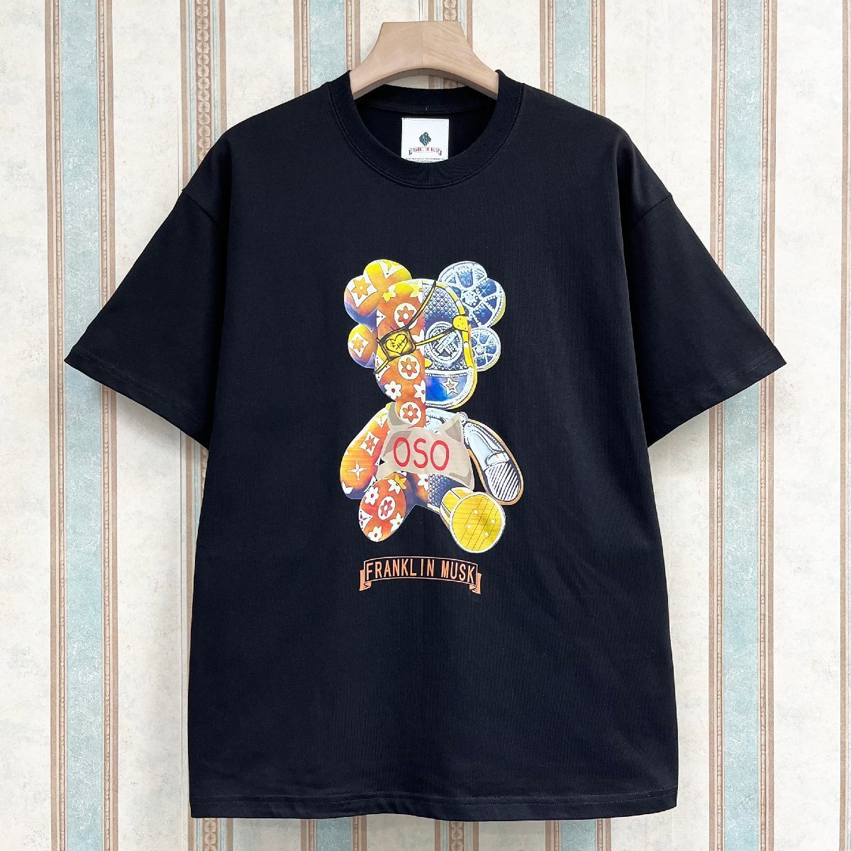 > 定番 定価2万 FRANKLIN MUSK・アメリカ・ニューヨーク発 半袖Tシャツ 上質 通気 快適 モノグラム アメカジ ベアブリック/Bearbrick サイズ3