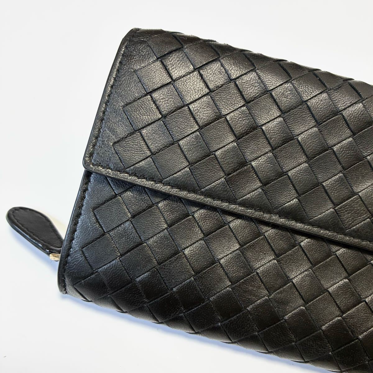 > ★BOTTEGA VENETA ボッテガヴェネタ イントレチャート 長財布 レザー ブラック 黒【鑑定済み 本物保証】