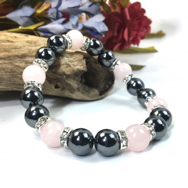 - ヘマタイト×ローズクォーツ パワーストーン ブレスレット 天然石ブレス (シルバー) 10mm メンズ・レディース 健康運 勝利 還暦祝い