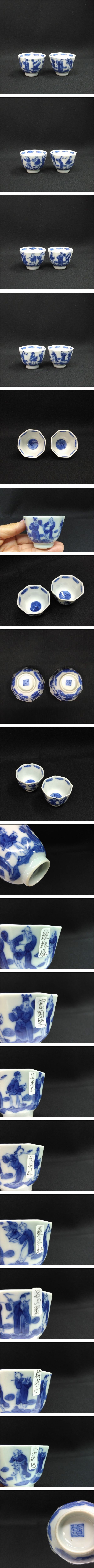 > 時代もの◆◇在銘;龍オールド瀬戸│Old SETO細密青華 八仙染付 面取茶杯 一対うぶだし品◇◆煎茶道具 台湾茶 中国茶 茶藝 dy15584-y