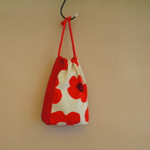 - 【入学、入園!】450円ポップアップ(赤)パッチワーク巾着袋 【手作り小物】