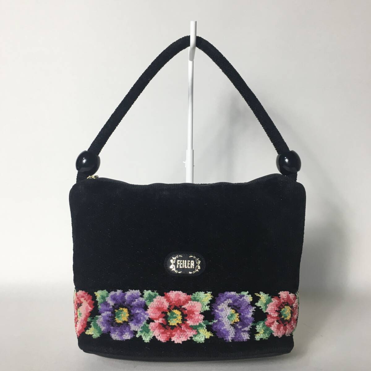 - 79B172|美品|フェイラー ハンドバッグ シュニール織 ブラック 花柄