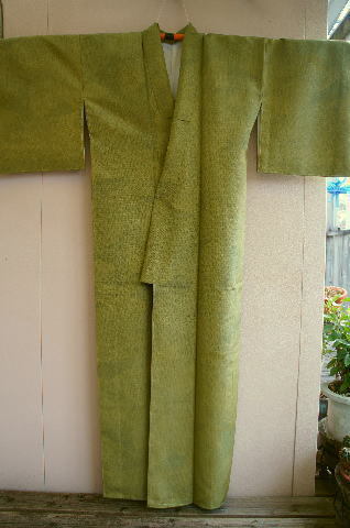 - 掘り出しました!正絹6000円わさび色裂取り文袷小紋 お稽古着 着物 美品