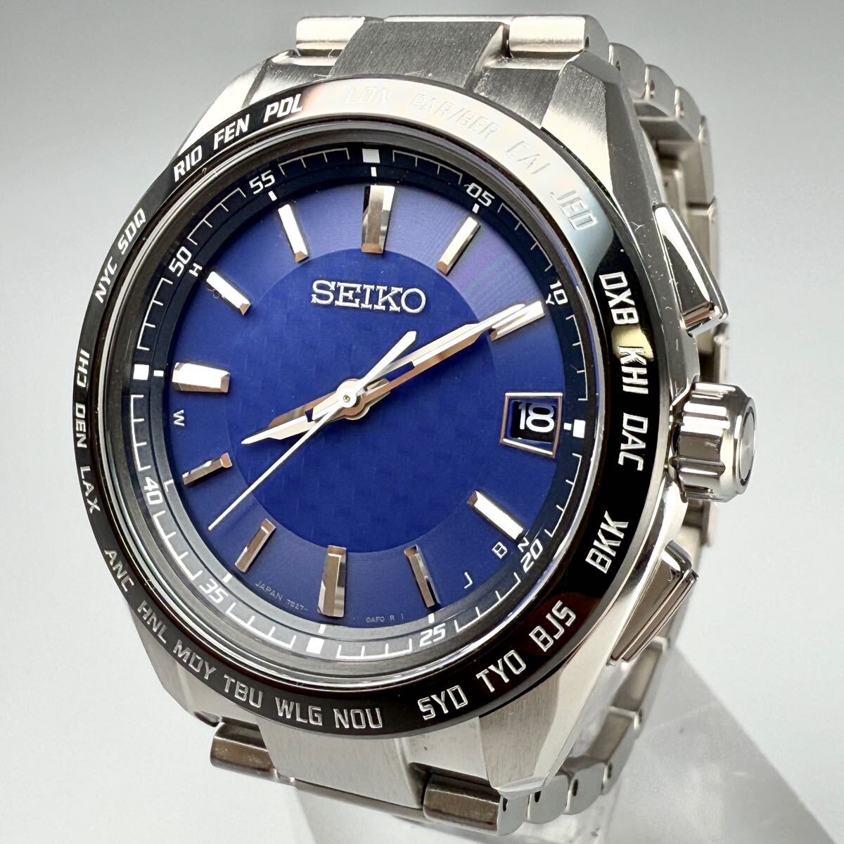 - 極美品【稼働】SEIKO/セイコー BRIGHT/ブライツ 腕時計 電波ソーラー ブルー文字盤 デイト メンズ 7B27-0AC0 チタン ウォッチ