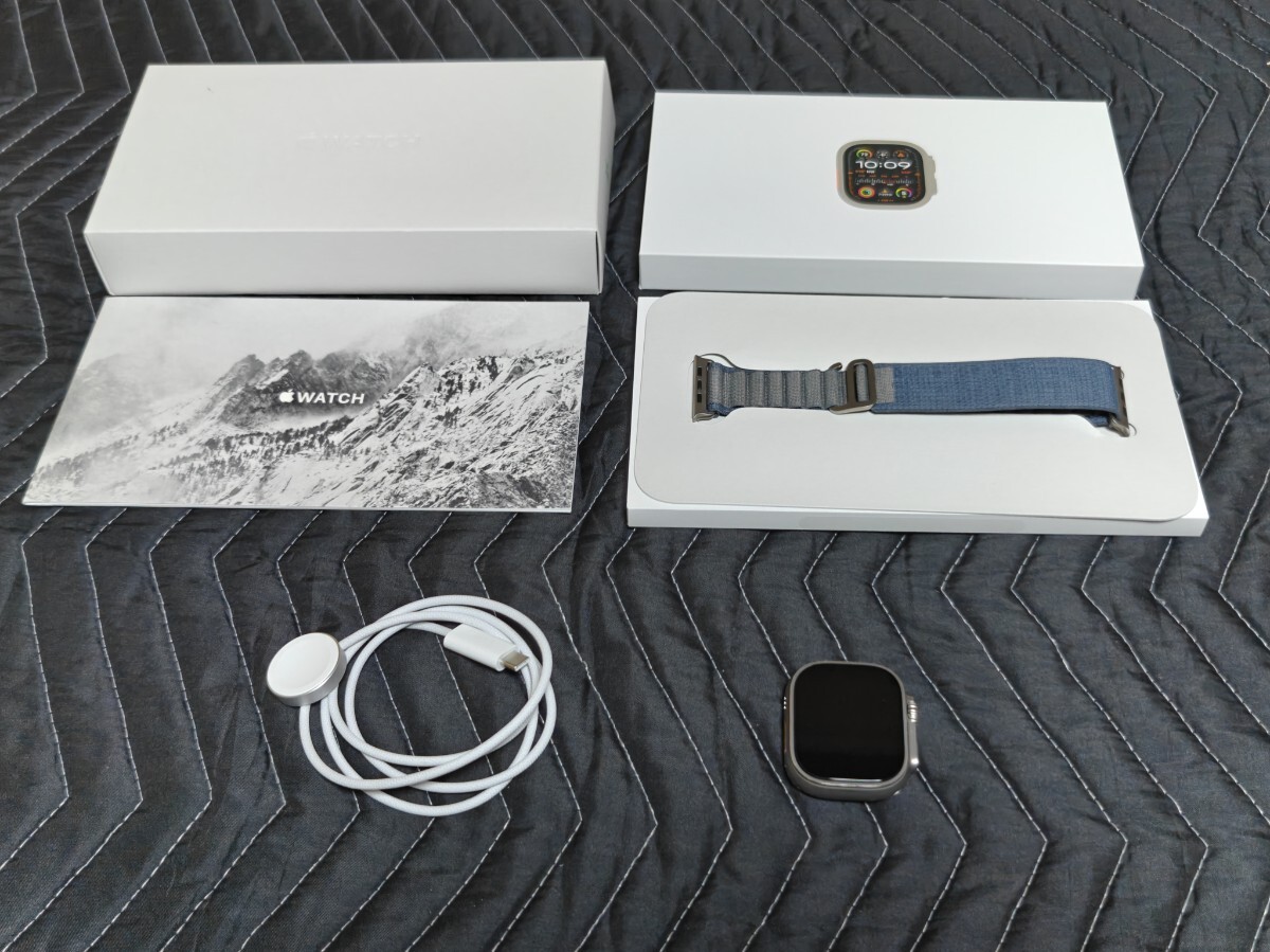 - Apple Watch ultra 2 49mm チタニウム ブルーアルパインループ L Cellular 社外品アルパインループ付属 保証残あり
