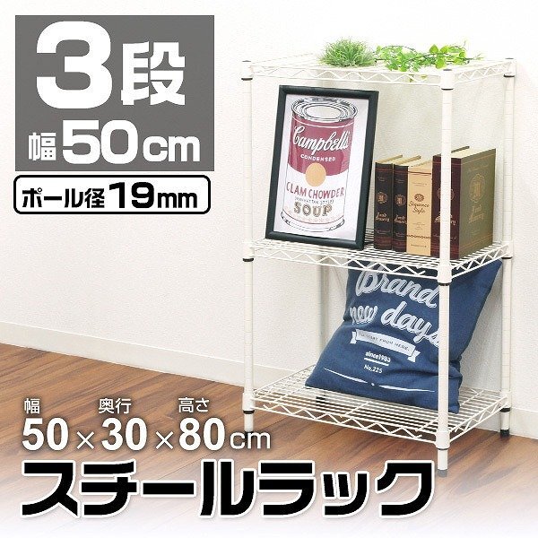 > 新品 スチールラック 3段 耐荷重150kg 50×30×80cm カラーラック メタル シェルフ ラック おしゃれ 収納ラック 組立簡単 ホワイト