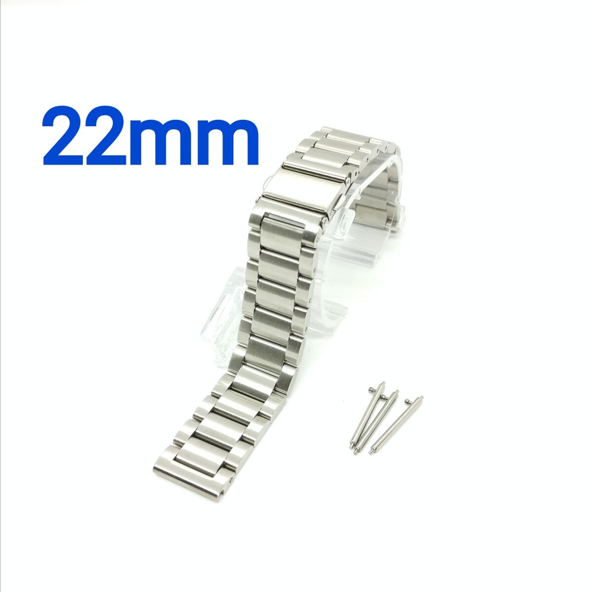 - 送料無料 腕時計 交換ベルト シルバー 3連 直カン 22mm 無垢 ステンレス バックル プッシュ式 取手バネ棒付 B8