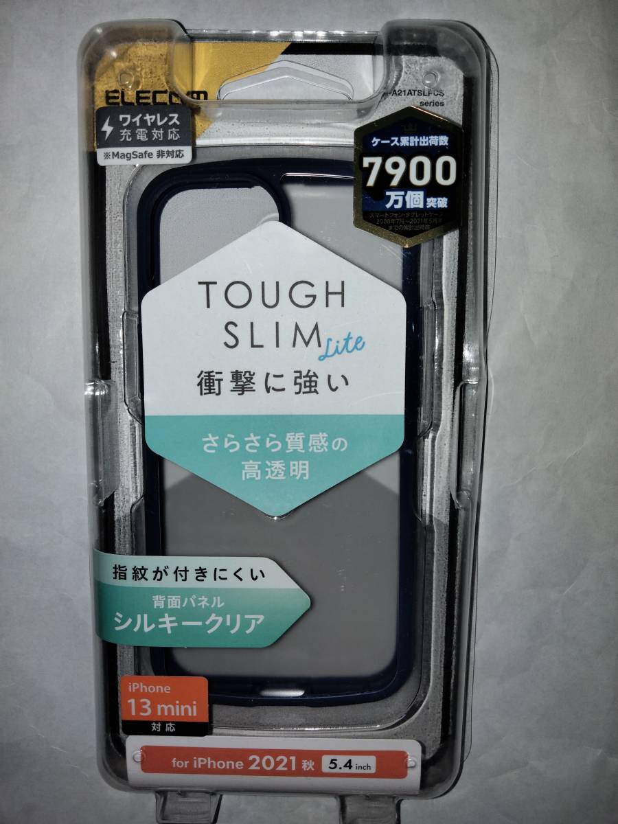 > ELECOM iPhone 13 mini TOUGH SLIM LITE フレームカラー シルキークリア ネイビー 側面弾力性あるTPU背面指紋付きにくいポリカーボネート
