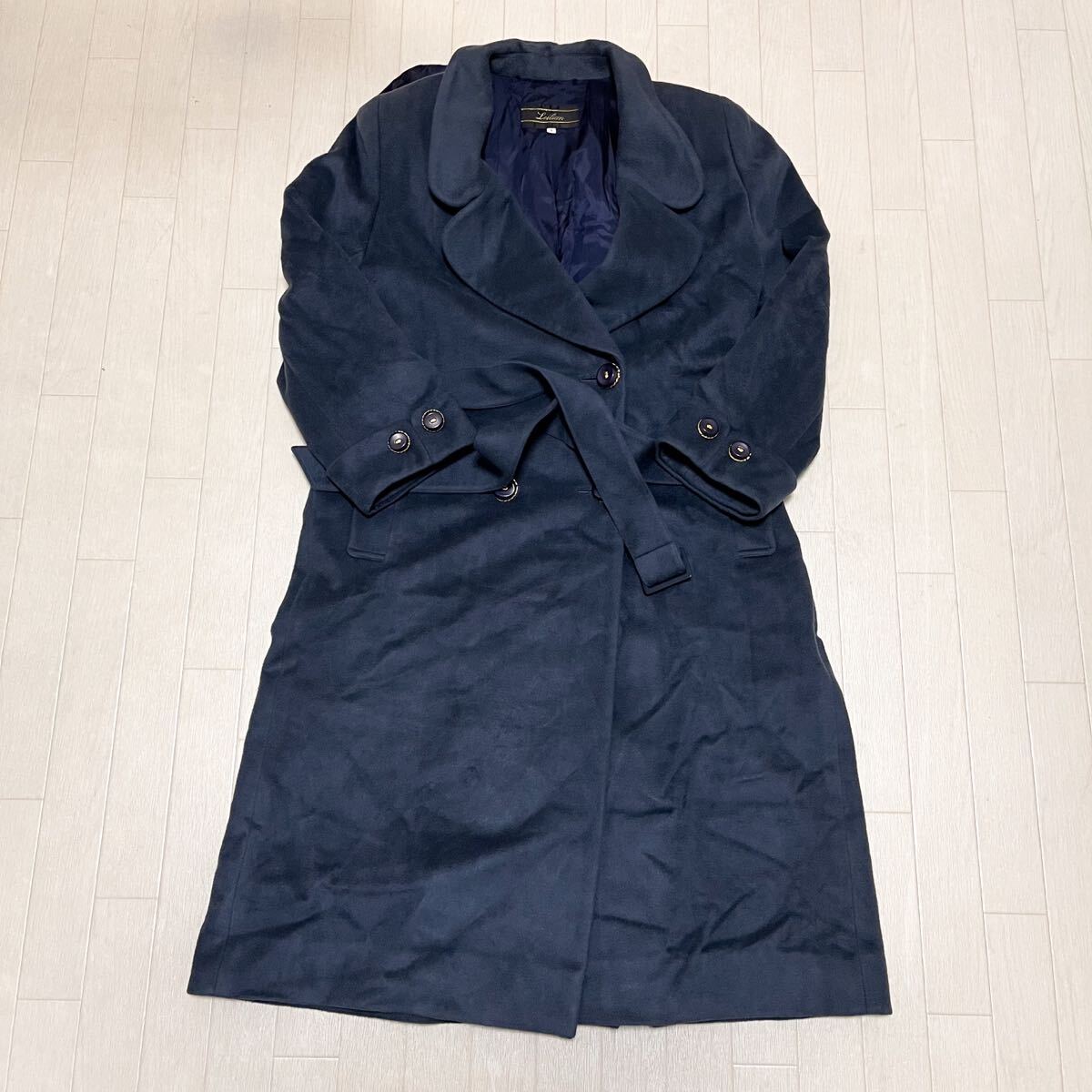 - 和850★ Leilian レリアン チェスターコート ロングコート 超ロング ダブルボタン 9 ネイビー レディース カシミヤ混