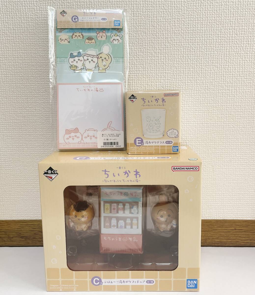 > ちいかわ 一番くじ C賞 湯あがりフィギュア くりまんじゅう うさぎ E賞湯あがりグラス G賞 ステーショナリー フィギュア