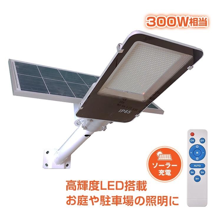 - 送料無料 LEDソーラー街灯 ガーデンライト ソーラー充電 外灯 駐車場 防犯 投光器 配線不要 300W相当 夜間自動点灯 リモコン付き sl075
